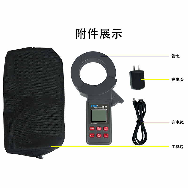 ETCR6670D大口徑直流/交流鉗形電流表鉗表具有直流/交流真有效值測量、最大值/最小值/平均值測量等功能。鉗表具有數(shù)據(jù)保持、藍牙通訊功能,使用大容量鋰電池type-c充電口,是一款新型的電工安全檢測必備工具。