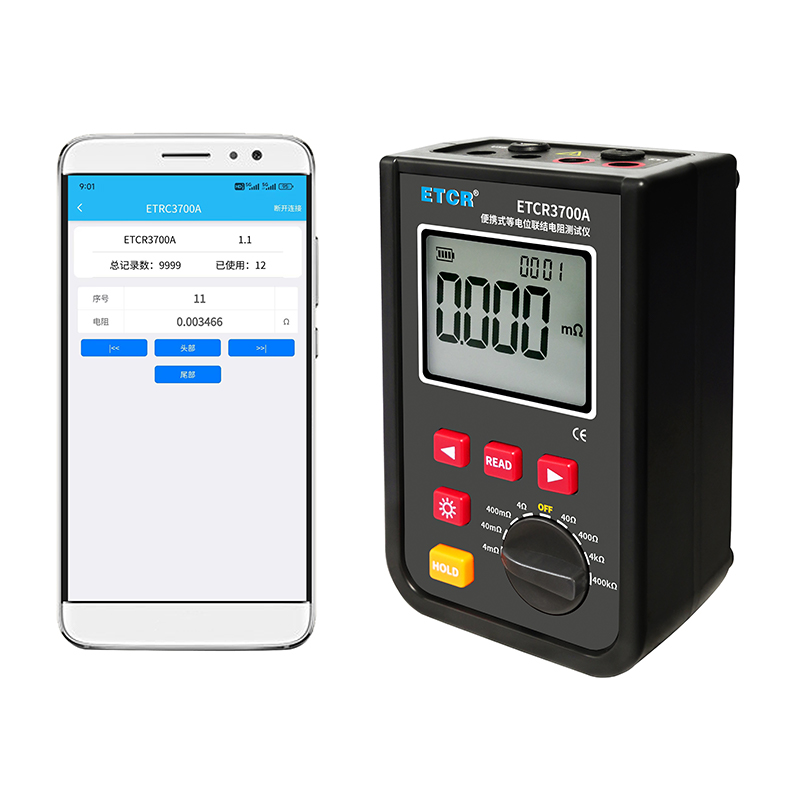 ETCR3700A等電位聯(lián)接電阻測試儀由主機(jī)、測試線組成。寬量程:0.001mΩ~400kΩ,高分辨率1uΩ,最大測試電流:1.2A,主機(jī)大屏LCD顯示,采用可充電大容量鋰電池,儀表具有自動關(guān)機(jī)功能,數(shù)據(jù)存儲功能,存儲測試數(shù)據(jù)9999組,具有藍(lán)牙通訊,安裝APP后可在手機(jī)查看測試記錄,具有USB接口,安裝上位機(jī)軟件后,可將測試數(shù)據(jù)下載電腦進(jìn)行保存、管理、查詢、分析、打印等,儀表操作簡易,攜帶方便。