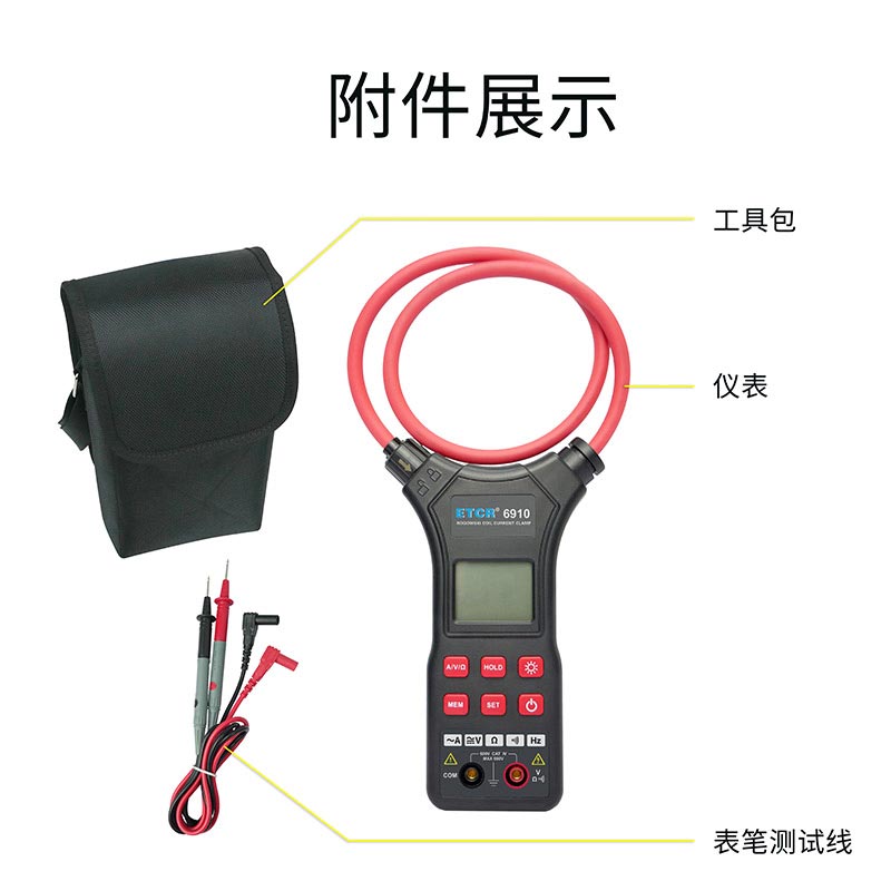 | ETCR6900柔性電流鉗表 | AC 0mA~9999A | AC 0.1V~750 VDC 0.1V~1000V | / | Φ200mm | 99組 |