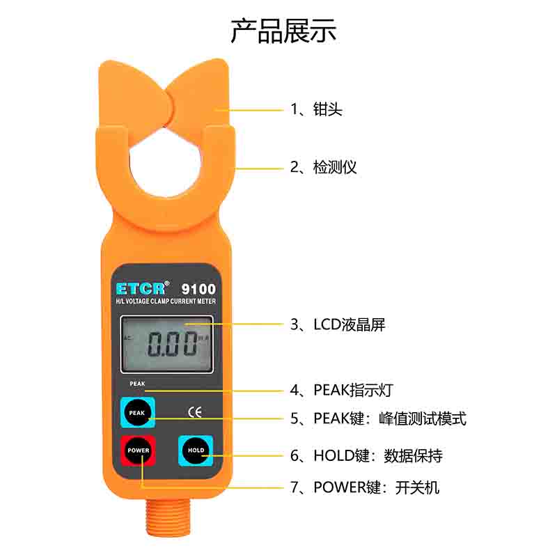 ETCR9100高低壓鉗形電流表鉗頭與引導(dǎo)區(qū)創(chuàng)新的一體化設(shè)計(jì),通過(guò)按壓或退拔絕緣桿能快速方便鉗夾或撤離被測(cè)導(dǎo)線,安全快捷。儀表還具有峰值保持、數(shù)據(jù)保持、數(shù)據(jù)存儲(chǔ)等功能。
