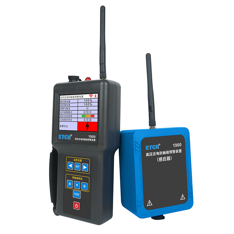 ETCR1900高壓近電防觸碰智能預(yù)警裝置由感應(yīng)器、外置電池、接收器、藍(lán)牙APP組成。感應(yīng)器采用非接觸感應(yīng)技術(shù)用于監(jiān)測(cè)高壓電場(chǎng),接收器接受感應(yīng)器發(fā)送的監(jiān)測(cè)信號(hào),當(dāng)電場(chǎng)強(qiáng)度達(dá)到設(shè)定的報(bào)警值時(shí),觸發(fā)報(bào)警功能發(fā)出聲光報(bào)警及語音報(bào)警。感應(yīng)器與接收器采用無線通訊,傳輸距離200米。裝置具有報(bào)警靈敏度調(diào)節(jié)和邊界報(bào)警功能,用戶可在接收器設(shè)置報(bào)警靈敏度或自設(shè)定報(bào)警距離,以適應(yīng)復(fù)雜電場(chǎng)的環(huán)境。接收器具有485接口及藍(lán)牙功能,便于用戶二次開發(fā)。移動(dòng)終端安裝APP后,可查看報(bào)警信號(hào)或設(shè)置報(bào)警參數(shù)。