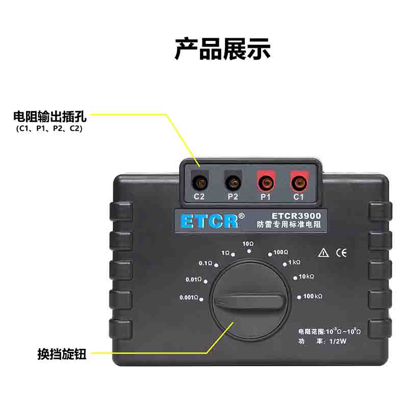 ETCR3900防雷專用標(biāo)準(zhǔn)電阻由9個1/2W高精度線繞電阻組成,校準(zhǔn)電阻時直接換擋測試,無需更換測試線,性能穩(wěn)定結(jié)構(gòu)堅固,校準(zhǔn)測試特別方便。采用的高精度線繞電阻最高精度達(dá)0.05%,其阻值包括1mΩ、10mΩ、100mΩ、1Ω、10Ω、100Ω、1kΩ、100kΩ完全滿足國家氣象局38號令【雷電防護(hù)裝置檢測資質(zhì)管理辦法】中規(guī)定的10-3~105Ω范圍。本標(biāo)準(zhǔn)電阻主要用于接地電阻測試儀、等電位測試儀等儀器的校準(zhǔn)。廣泛應(yīng)用于建筑質(zhì)檢站、監(jiān)理公司、建筑施工單位、防雷公司、電力部門等。