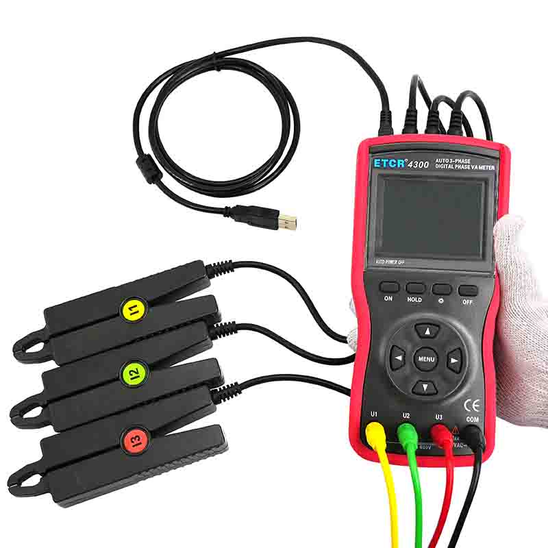 ETCR4300三相數(shù)字相位伏安表采用2.8寸TFT彩色液晶屏,動態(tài)顯示,向量圖指示,一目了然。其尖小形電流鉗鉗口適用于排線密集的場所。儀表的智能化設計減少了操作的繁瑣性,降低了誤操作的可能性,測試精度高、使用方便。儀表配有的防振防滑高絕緣護套,USB通訊接口,可存儲1200組數(shù)據(jù),通過系統(tǒng)軟件上傳所存數(shù)據(jù)到電腦,實現(xiàn)在線實時監(jiān)測與歷史查詢,讀取、保存、報表、打印歷史數(shù)據(jù)等。