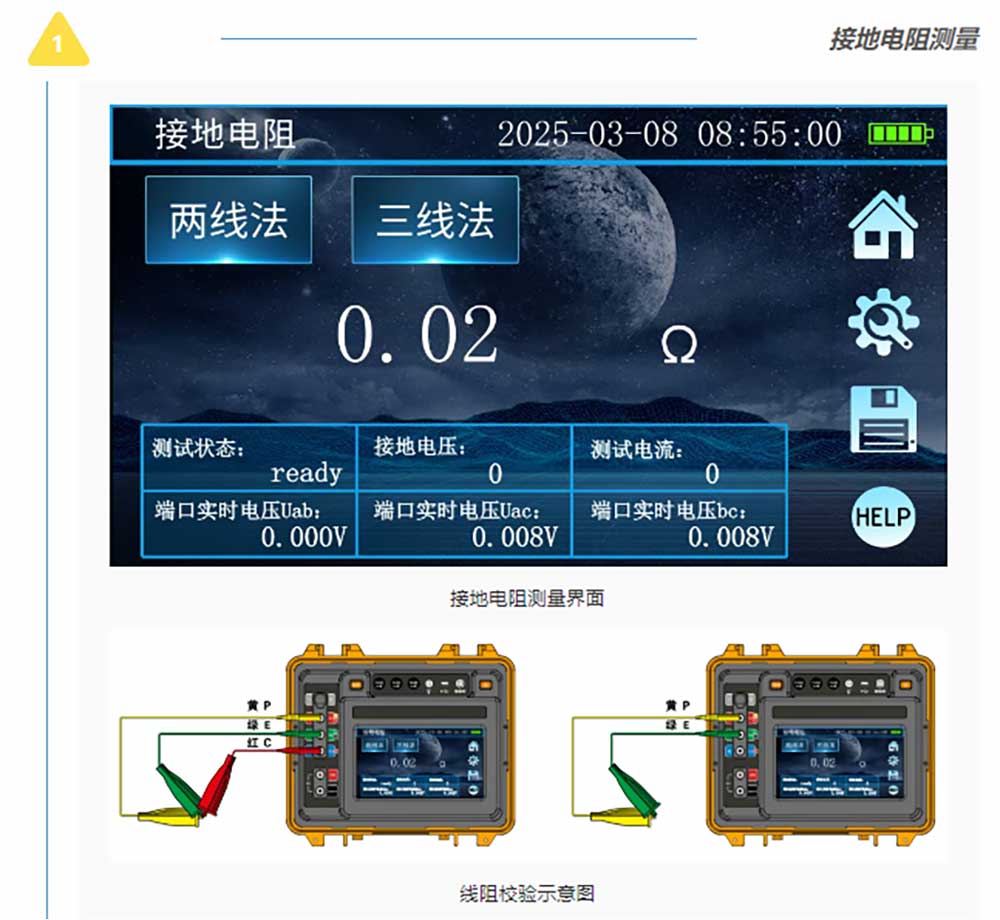 測試示意圖及接線標識用不同顏色區(qū)分方便用戶在不同功能下的不同使用習慣。